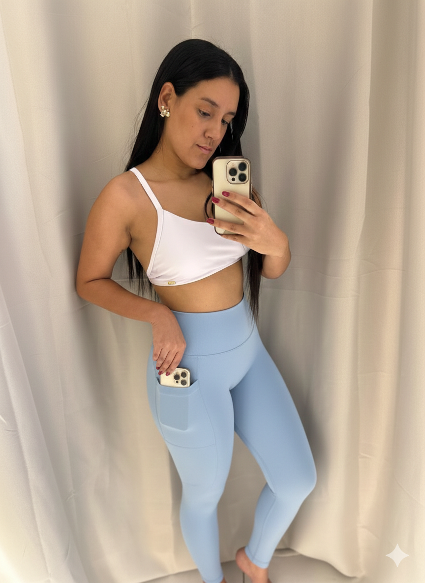 Legging AVULSA sem empina canelado power SPORT AZUL BEBE