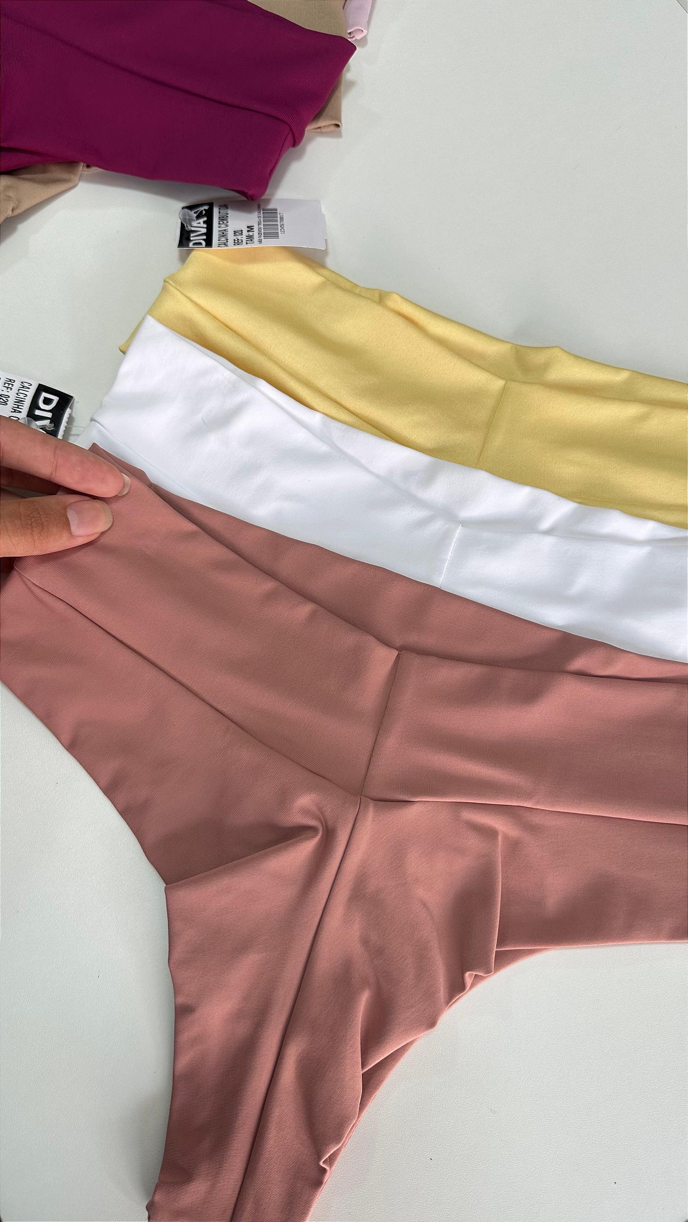 Kit com 05 und. Calcinha Costura Embutida, uma peça toda dupla, fio duplo, tecido de poliamida. NÃO TEM COMPRESSÃO. Oferece um perfeito ajuste ao corpo sem perder a elegância. Ideal Para o uso no dia a dia, pois sendo muito confortável, ela não incomoda nem machuca. Simplesmente uma peça indispensável para o seu guarda roupas.